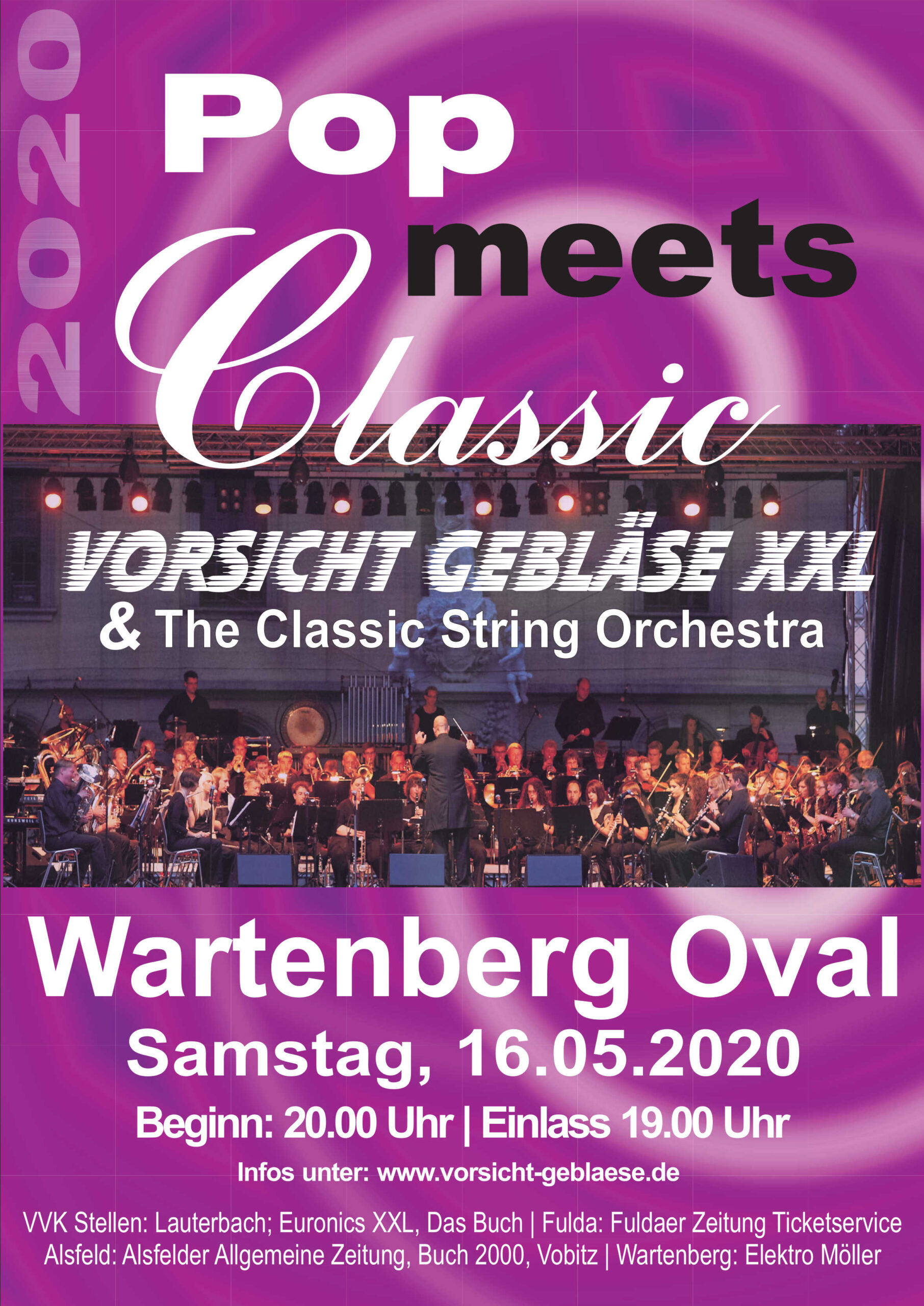 Aufgrund der aktuellen Ereignisse und Vorgaben durch die Hessische Landesregierung, wird leider auch die Pop meets Classic Veranstaltung im Wartenberg Oval vom 16.05.20 abgesagt. Die Gesundheit unseres Publikums hat für uns oberste Priorotät. Deshalb behalten die Eintrittskarten trotzdem ihre Gültigkeit.